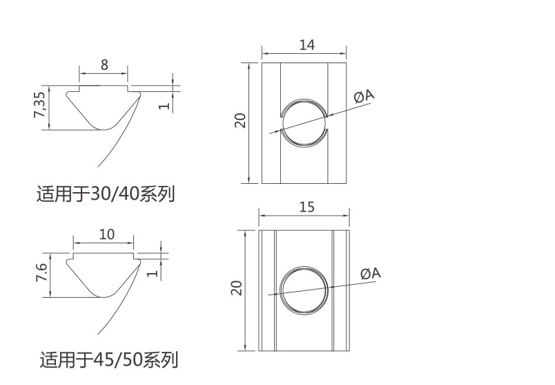 彈片螺母塊能被直接塞進(jìn)鋁型材槽坑中的任意裝配點(diǎn),他背部的彈片能撐起并固定它的位置,使安裝十分簡(jiǎn)單且可靠,它是型材連接中使用較多的配件之一。