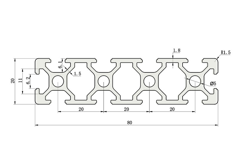 適用于應力及強度較大的框架組合結(jié)構(gòu),它的外型采用圓角過渡,表面經(jīng)過陽極氧化處理,高雅美觀并抗腐蝕,它通常采用M6X20高強度專業(yè)螺栓加彈性扣件的內(nèi)部連接方式,堅固又可靠,是工業(yè)框架應用廣泛的型材之一。